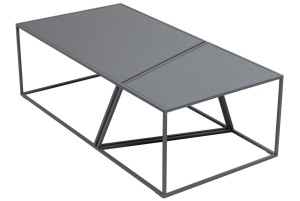 Konstrukcja stolika LANA jest oparta na prostokątnym blacie oraz podstawie, które na ukos przecinają dwa złączone ze sobą trapezy. Miejsce przecięcia trapezów z blatem zostało zaakcentowane delikatną przerwą, dzięki której efekt nietypowej i zaskakującej konstrukcji doskonale się uwydatnia.
